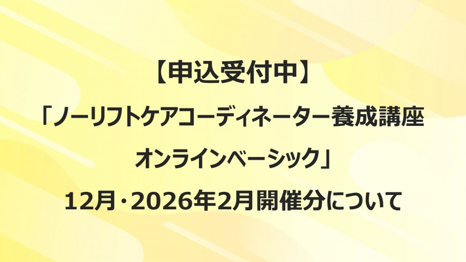【申込受付中】「ノーリフトケアコーディネーター 養成講座 オンラインベーシック」12月・2026年2月開催分について